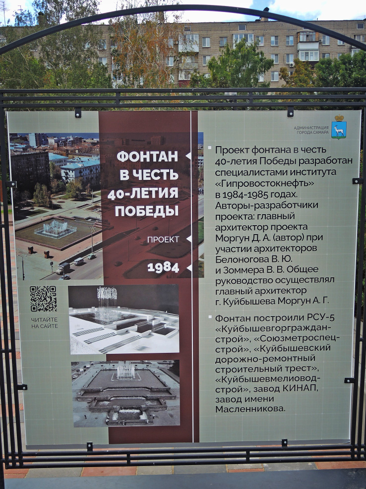 3 сентября 2025 года в Самаре был торжественно открыт обновлённый фонтан в честь 40-летия Победы. Он находится на пересечении проспекта Ленина и улицы Осипенко. Изначально он был открыт в 1985 году к 40-й годовщине Победы в Великой Отечественной войне. Осенью 2024 года началась его глобальная реконструкция. Которая, как обычно, затянулась. Честно говоря, надежды, что фонтан заработает в текущем году, лично у меня не было. Однако, к сентябрю все работы были закончены. И теперь можно оценить их масштаб. Можно смело говорить, что фонтан переделали полностью. Изменился его рисунок, добавлены новые струи. Уменьшен объём главного бассейна за счёт прогулочной дорожки вокруг центральной композиции. Полностью заменены отделка, трубы и система управления работой фонтана. (Насколько качественно всё это сделано, покажет время. Выводы можно будет делать уже следующей весной.) Появились подсветка и динамические режимы с возможностью проведения световых музыкальных шоу. Именно такое шоу было продемон