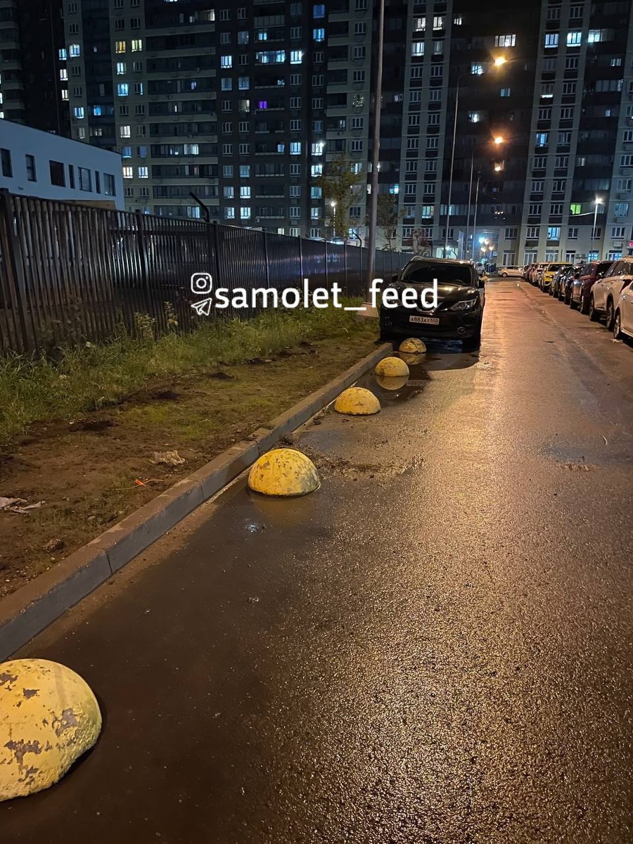 Установленные полусферы на Камова 1 к.2 не стали препятствием для тех, кто хочет там парковаться.