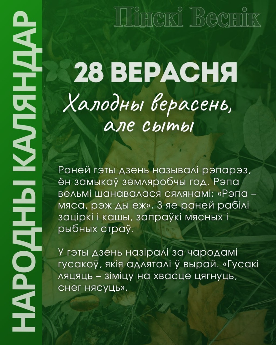 ➡️У гэты дзень назіралі за чародамі гусакоў, якія адляталі ў вырай. «Гусакі ляцяць – зіміцу на хвасце цягнуць, снег нясуць».