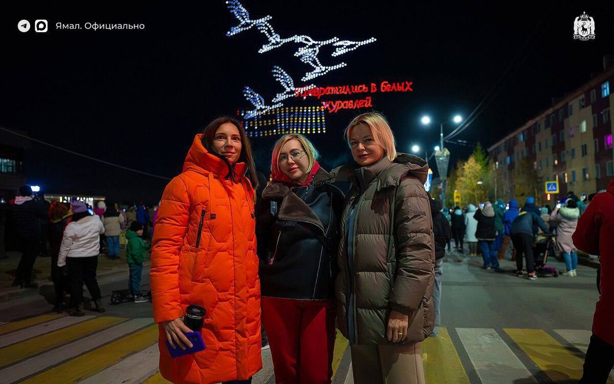 Масштабное световое шоу «Небо победителей», посвящённое 80-летию Великой Победы, прошло в Салехарде. Две с половиной тысячи программируемых дронов поднялись в небо и, объединившись в единое целое, выстроились в узнаваемые изображения.