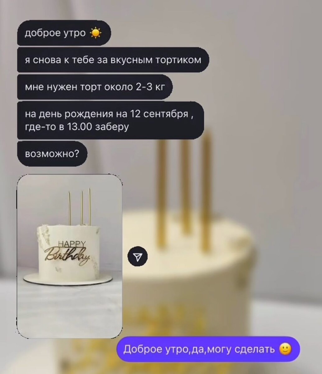Конечно, я была ошарашена, прочитав такие сообщения, предложила вернуть торт, так как не поняла в целом суть ее претензий.