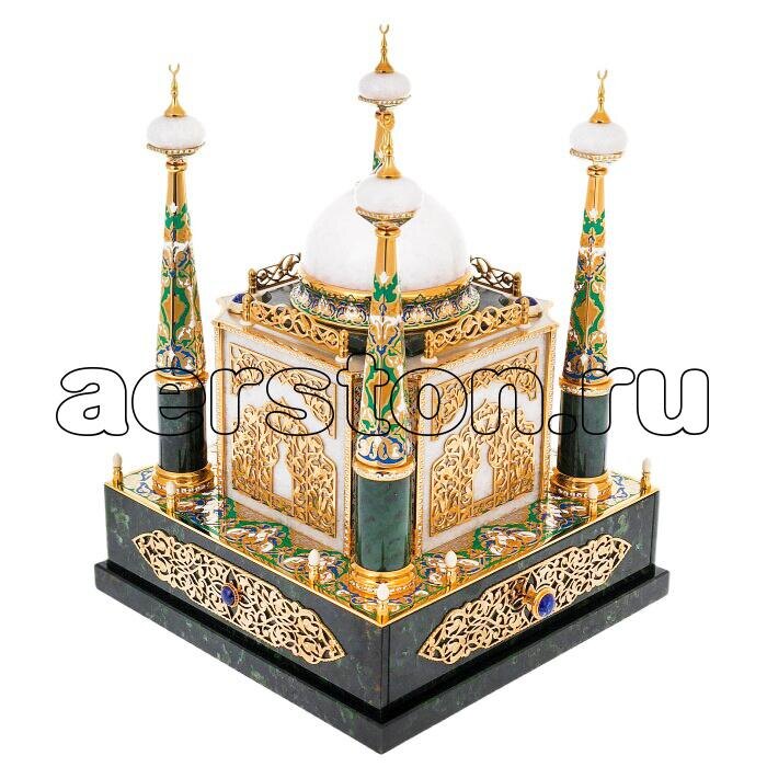 Настольная Мечеть с подсветкой хранилище для Корана ⨳ Материалы: нефрит, белый нефрит, кварц, лазурит, ювелирная латунь, никель, золото, фианиты, цветные эмали, светодиодная лента, пульт. ⨳ Габаритные размеры: основание 275 х 275 мм, высота - 370 мм. ⨳ Коран на арабском языке. ⨳ Изделие укомплектовано: подарочной коробкой из натуральных пород дерева. ⨳ Авторская ручная работа. ✔️Подпишись на наш канал ✍️ ✔️Жми на палец вверх! 👍 🔸 Интернет магазин 📱 Телеграм канал 🔹 Дзен