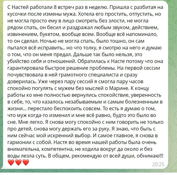 Отзыв клиентки, пережившей измену мужа после 5 лет брака