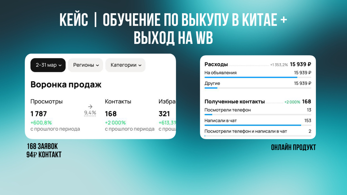 Кейс по настройке рекламы на Авито в нише онлайн продукта в направлении инфопродукты и онлайн обучение. Над проектом работала Кристина (написать напрямую) Обратилась девушка, она занимается обучением у нее есть уже упакованные инфопродукты о том как зарабатывать онлайн на том "Как выкупать товар в Китае", "Как выйти на WB". - есть знакомые коллеги по бизнесу, которые тоже это продвигают на Авито
