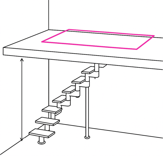 - Замеряйте не только высоту и длину, но и свободное пространство вокруг лестницы (например, возле входных дверей или окон).