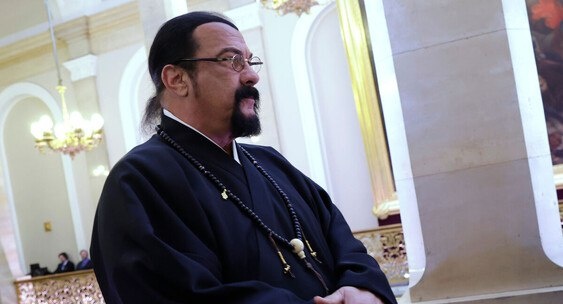 Американский актер Стивен Сигал приехал на церемонию прощания с российским режиссером Тиграном Кеосаяном.