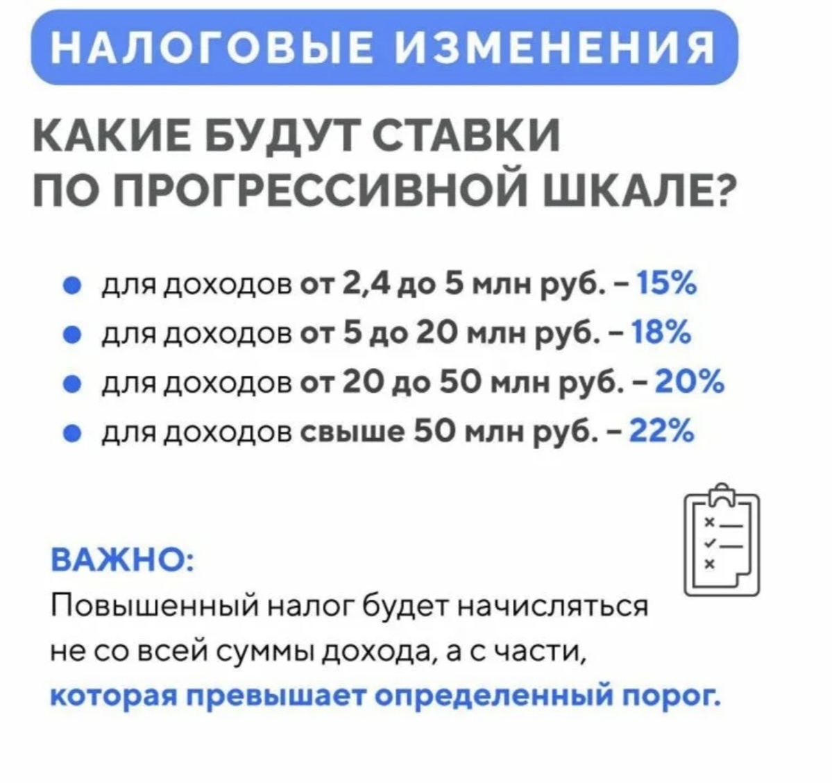 Федеральный закон 176-ФЗ от 12 июля 2024 года установил новый порядок расчета НДФЛ, а именно: Прогрессивная шкала означает, что ставка налога напрямую зависит от размера доходов. До 2025 года мы использовали две ступени: 13% до 5 млн ₽ и 15% — от 5 млн ₽. Теперь вариантов стало больше — добавились ставки 18%, 20% и 22%, а лимиты по суммам изменились. Налоговым периодом остался календарный год: при расчете налоговой базы учитывается совокупный заработок за 12 месяцев. Годовой доход физлица, ₽ Ставка Алгоритм расчета НДФЛ до 2,4 млн 13% Фактический доход х 13% до 5 млн 15% 2,4 млн х 13% + (фактический доход - 2,4 млн) х 15% до 20 млн 18% 2,4 млн х 13% + 2,6 млн х 15% + (фактический доход - 5 млн) х 18% до 50 млн 20% 2,4 млн х 13% + 2,6 млн х 15% + 15 млн х 18% + (фактический доход - 20 млн) х 20% от 50 млн 22% 2,4 млн х 13% + 2,6 млн х 15% + 15 млн х 18% + 30 млн х 20% + (фактический доход - 50 млн) х 22% Важный момент — повышенная ставка НДФЛ применяется не ко всей сумме дохода, а толь