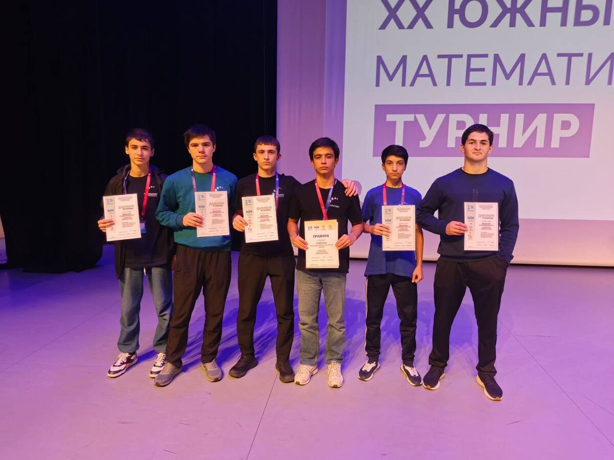 Сборная Дагестана заняла II место на XX Южном математическом турнире Команда школьников из Республики Дагестан вновь заявила о себе на всероссийском уровне, став серебряным призёром одного из самых престижных интеллектуальных состязаний — XX Южного математического турнира, который проходил с 20 по 28 сентября на базе Всероссийского детского центра «Орлёнок». Южный математический турнир — это соревнование командного формата, где участники 7–11-х классов из разных регионов страны сражаются в математических боях. В состав команды вошли: Расул Алиев (капитан) — 11 класс, Лицей №39 Адам Мамаев — 11 класс, РМЛИ ДОД Нурислам Муселемов — 10 класс, Лицей №39 Султанали Багомедов — 10 класс, Лицей №39 Джамал Исаков — 10 класс, Лицей №39 Рамазан Магомедов — 10 класс, Лицей №39 Все участники команды — опытные олимпиадники, за плечами которых победы на региональных этапах ВсОШ, международной олимпиаде «Турнир городов», участие в Кавказской математической олимпиаде и образовательных сменах «Сириу