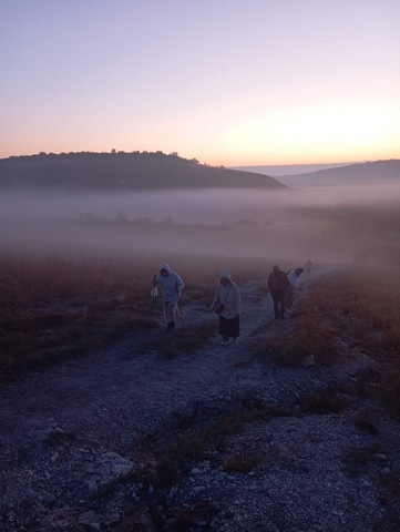 Чтобы не терять времени, сходили на местную гору Голгофа, помолились поклонному кресту на вершине. Монастырь находился внизу и весь утонул в тумане. Лучи солнца потихоньку разгоняли его, и когда наша группа спустилась, из дымки уже выплывали храмы и другие постройки. Нас ждали утренняя служба и экскурсия в пещерные храмы.