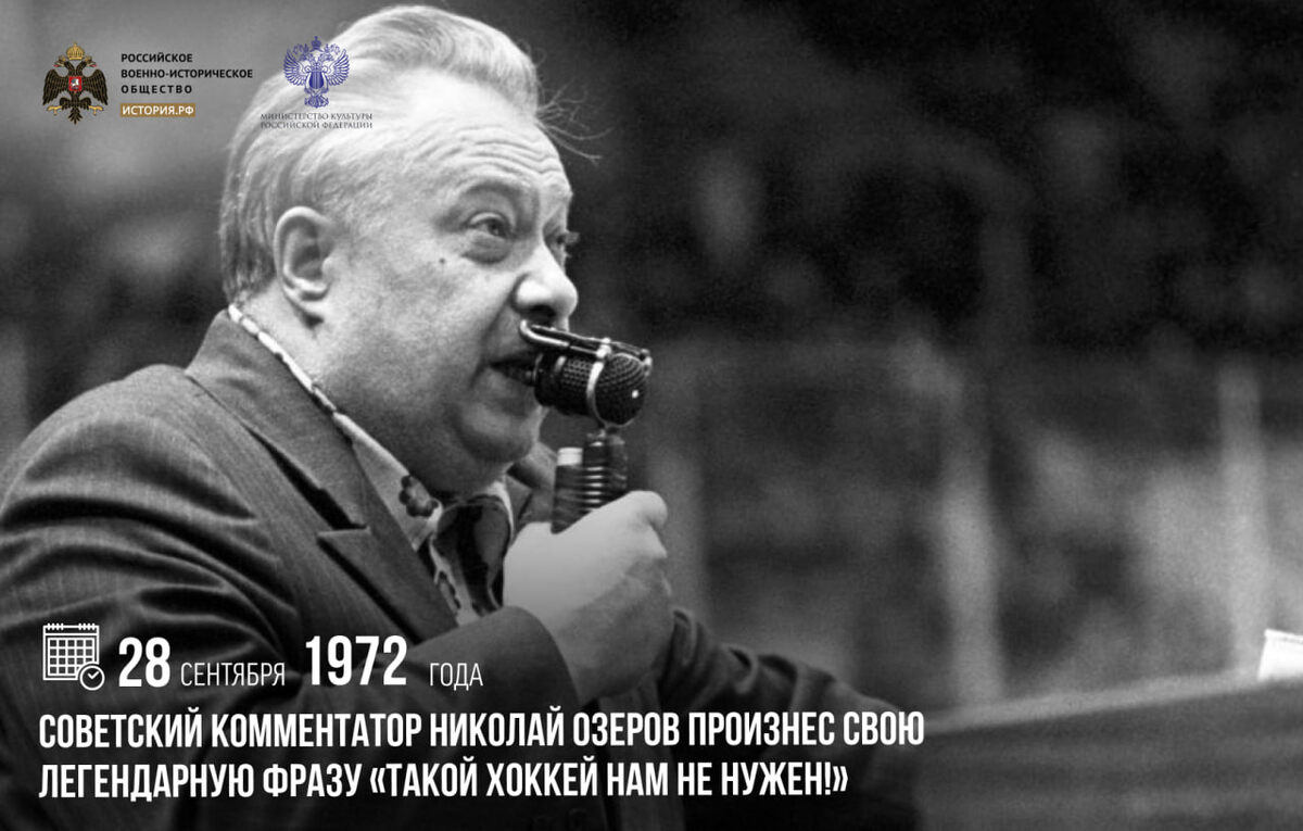 28 сентября 1972 года советский комментатор Николай Озеров произнес свою легендарную фразу «Такой хоккей нам не нужен!»