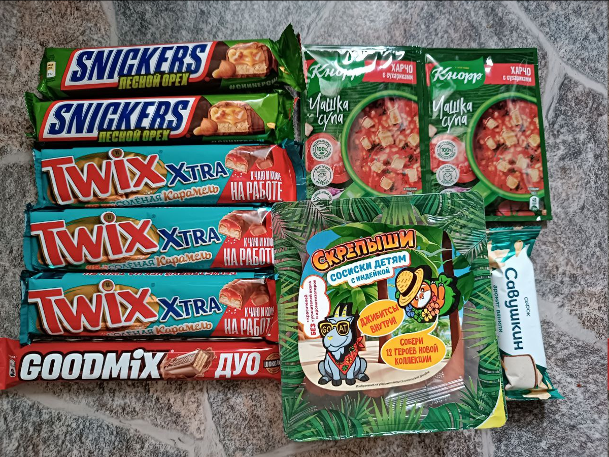 Покупки со 100% кешбэком от Т-Банка, шоколадные батончики со скидкой 70%, бесплатный гель для умывания и бесплатный сыр на 1000 рублей. Что сделано для экономии сегодня? Закупилась по купонам из Магнита и из бота Сникерс. На шоколадные батончики мне выпали купоны на скидку 60% и 70%. На чашку супа, Гудмикс и сосиски 50%, а сырок бесплатный, со 100% кешбэком от Т-Банка. В этот раз хорошие купоны выпадают, но я ещё и с трёх аккаунтов играю. Теперь ловлю купоны на Сникерсы от 70%. Потому что 50-60% уже не радует, хочется больше. В боте можно не брать купон на 50%, а просто перезайти, поменять город и ловить больший процент. Когда выпадет нужный, тогда и забрать. Если первым числом выпало 15-18%, то будет 60-70% в итоге. Так я перебираю разные города. Можно ещё нажать кнопку "Добавить персональную скидку", я раньше её не замечала. Так выпадает больший процент, даже 90. Но у меня пока не получилось, максимум 80%. Но и 60-70% неплохо, потом, когда не будет уже скидок, буду доставать шоколад
