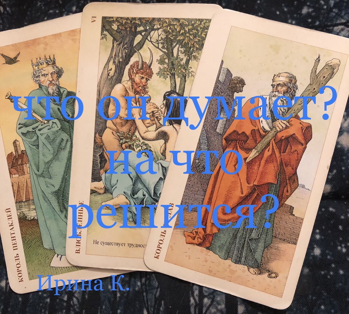 спросим карты о нём,о его мыслях-планах..Вы в своей голове уже набросали примерный ход развития событий))),вот и сравним-а все ли так,как вам кажется??