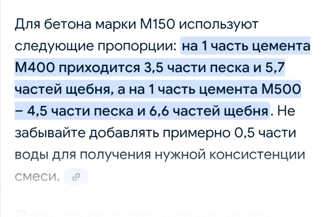 Приготовление бетона М150 пропорции
