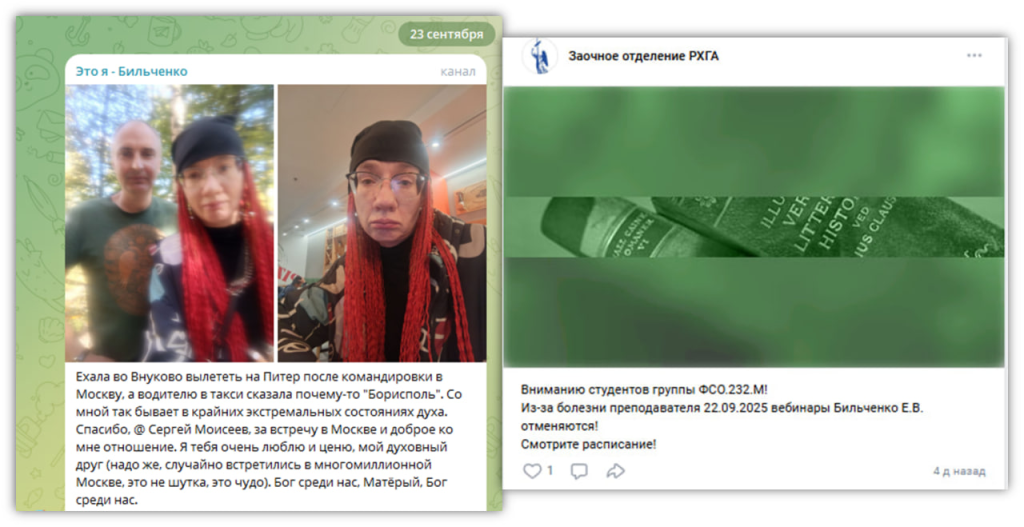 Больной тератофил”. (Вячеслав “Керчь”) РХГА – контора специфичная. Трудоустроив майданную упыриху профессоркой, выпуская её с молодёжи, там, похоже, готовы покрывать любые финты. Они отменяют пары и публично сообщают студентам-заочникам, что эта особь занемогла в то время, когда Е.Бильченко куролесит в Москве с мутным харьковским триединцем Моисеевым.
