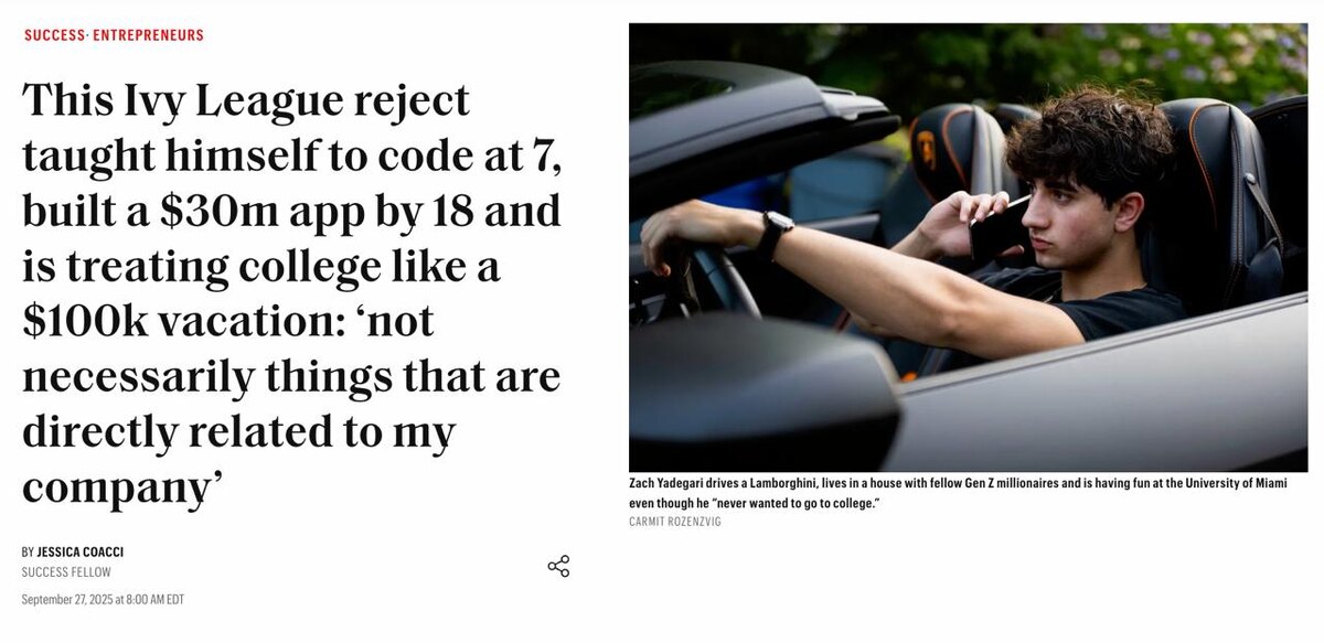 Будущее точно за промпт-инженерами: 18-летний американец смог заработать около $30 млн, просто подобрав правильный промпт для ChatGPT. А если точнее, он заработал на своём приложении Cal AI, которое считает калории по фото еды, узнал Fortune. Оно работает на базе обычного ChatGPT. @lobushkin