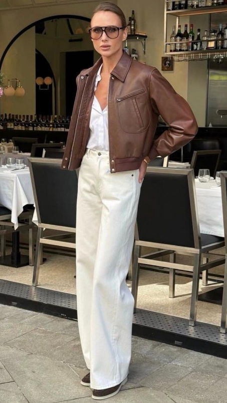Светлый акцент: Почему белые джинсы — осенний мастхэв и как их носить. Белые джинсы часто ассоциируются с летом и отпуском, но именно осенью они раскрывают свой полный стилевой потенциал. В сезон, когда палитра одежды имеет тенденцию темнеть, они становятся тем самым свежим акцентом, который освежает любой образ, делая его современным, легким и невероятно стильным. Это смелое, но оправданное решение для тех, кто хочет выделяться из толпы. Разрушаем миф: Почему белые джинсы уместны осенью? · Контраст с осенней палитрой: Белый цвет идеально оттеняет глубокие осенние оттенки — горчичный, бордовый, хаки, темно-синий и все оттенки коричневого. Он добавляет образу визуальную легкость. · Универсальность: Невероятно сочетаемы. Они работают как с уютными свитерами, так и с элегантными пиджаками. · Визуальное вытягивание силуэта: Светлый низ, особенно в паре с обувью в тон, зрительно делает ноги длиннее. Главное правило: Выбирайте джинсы из плотного денима (не просвечивающего) и ориентируйтесь н