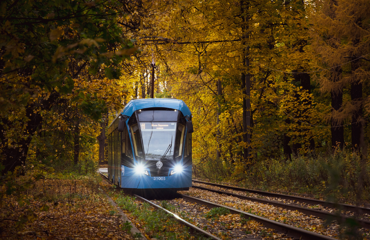 Октябрь месяц, Измайловский парк. Низкое, немного грустное, но всё еще ощутимое солнышко. Я спохватилась, что давно не делала городских зарисовок и пошла на прогулку с фотоаппаратом. Примечательно, что жили мы тогда (2019 год) в Коптево и даже не подозревали, что вскоре переедем в эти края. Издалека ехала, в общем. Трамвайчики здесь преимущественно новые «Витязи», плюс всего несколько КТМ-ов тогда ходили. В одном из оных, мимо проезжающих, водитель нам с Никоном фaк показал. И его-таки понять можно. Фотодpочeрoв на сём участке всегда много, некоторые аж на рельсы выходят и до упора там торчат с камерами и телефонами. Работать мешают. Этот, бредущий от остановки, мэн на сильно располневшего Виктора Пелевина похож чем-то. Ну и на его фоне представлено современное детище Усть-Катавского вагоностроительного завода: А новенький «Витязь» в кустах прячецца: Снова «Витязь». Шествует на фоне листопада. Долго стояли солнечные деньки той осенью. Прям всё ходишь-ходишь по