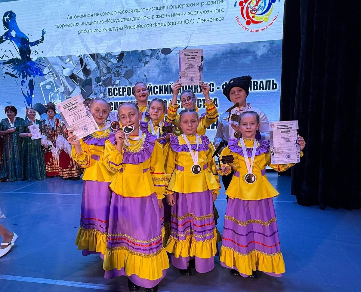 28 сентября 2025 года в г. Лермонтов Ставропольского края состоялся Всероссийский конкурс-фестиваль «Источник талантов». Этот фестиваль стал настоящим праздником творчества и вдохновения! Участниками конкурса стали талантливые ребята, проявившие себя в различных областях искусства. Особое внимание заслужили юные исполнители, продемонстрировавшие высокий уровень подготовки и искренность выступления. Одними из участников стали воспитанники народного вокального ансамбля «Радуга» под руководством Мамаевой Анастасии Владимировны, специалиста МБУК «АСКЦ». Лауреатом 1 степени в сольном исполнении стала Редькина Виктория. Лауреатом 2 степени награждён НВА «Радуга» за песню «Чудо-земля», а песня «Как работал я у пана» стала лучшим конкурсным номером фестиваля. Конкурс-фестиваль «Источник талантов» подтвердил свою значимость как площадка для развития детского и юношеского творчества, вдохновляя юных артистов стремиться к новым вершинам и совершенствовать своё мастерство! Так держать!