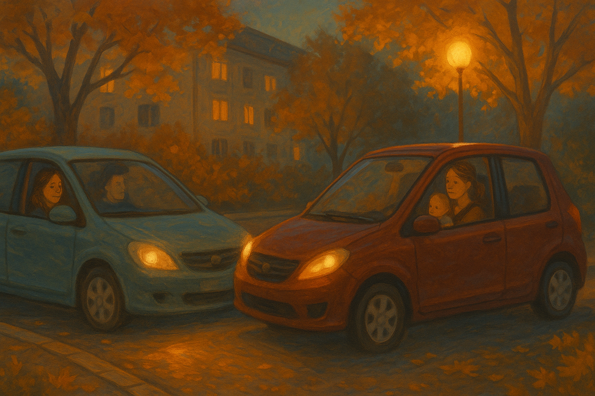 Нейропсихологическая байка с эстетикой внутренней улыбки Двор, вечер. Мы выкатываемся очень медленно, примерно 3 км/ч. Дыхание у меня ровное, внутри полная тишина. Я улыбаюсь: ничто не горит. Навстречу катится машина. У неё мигает правый поворотник. Логика подсказывает: «уйдёт вправо, а мы спокойно пройдём мимо». Мы аккуратно объезжаем. В следующую секунду слышим клаксон и горячие слова из окна. Вижу краем глаза: у водительницы на руках младенец. Ни автокресла, ни ремня; она сама не пристёгнута. Поворотник продолжает честно мигать «вправо», а машина уверенно держит курс «прямо». Сцена для учебника про внимание. Мозг однозадачен: он не «делает всё сразу», он переключается. Я выбрала одну задачу - безопасный разъезд на «черепашьей» скорости. Это и спасает: низкая скорость даёт время мозгу и телу, а ещё резко уменьшает риск (энергия удара растёт по квадрату скорости). Но есть ловушка восприятия: мигание это яркий сигнал, а тихие кинематические подсказки (куда смотрят колёса, как меняется