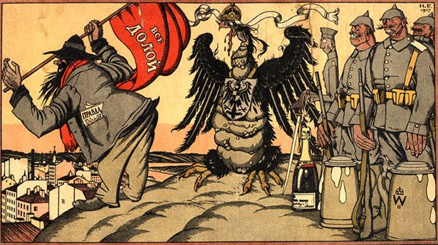 Но иначе было невозможно объяснить деятельность большевиков, которых привели к власти ради капитуляции в войне. Брестский мир не скрывался, но подавался, как гениальная временная мера для сохранения государства тотального государства. Типа, ради спасения правительства рабочих и крестьян в одной отдельно взятой столице отменяется территориальная целостность целой страны. Поскольку абсурдность 2х2=5 была очевидна за версту, тезис просто заставляли зубрить. До сих пор есть немало людей, считающих Ленина пророком, предвидевшим отмену неравного договора после поражения немцев от бывших союзников России.