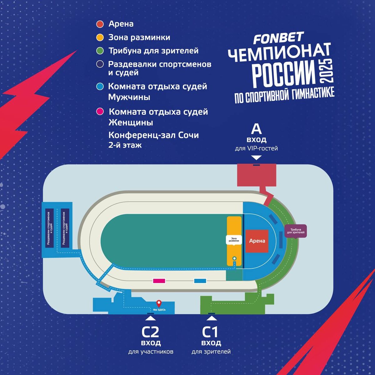Схема Сириус-Арены для участников FONBET Чемпионата России 2025
