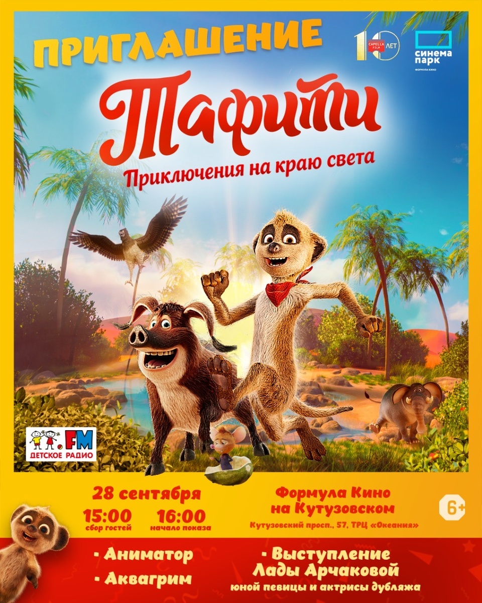 28 сентября в Москве в «Формуле кино» на Кутузовском в 15:00 состоялась премьера анимационного фильма «Тафити: приключения на краю света» (Германия, 2025), в котором #ЮнаяПевицаЛадаАрчакова и #АктрисаДубляжа Лада Арчакова озвучила сразу нескольких персонажей. Лада Арчакова , озвучившая в этом мультфильме сразу несколько персонажей детей приняла участие в премьере: * дала несколько интервью для new media и для «Детского радио», * выступила перед гостями премьеры со своей песней «Люди Мира» (автор Ангелина Романенко) * выступила как актриса дубляжа перед зрителями - представила новый мультфильм. Всем детям и взрослым желаем. ПРИЯТНОГО ПРОСМОТРА! Благодарим Capella Film, компанию-дистрибьютора хорошего кино!🌟 #СемьяАрчаковых kinoteatr.ru/events/taf...
