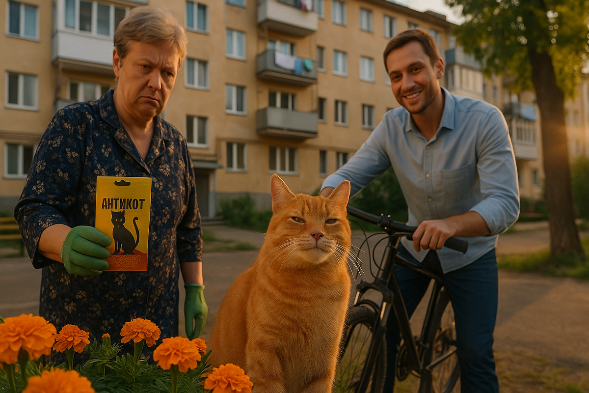 — Галина Павловна, давайте без экстремизма. Мы же цивилизованные люди, а не канал «Охота и рыбалка». Если кот на клумбе — ставим отпугиватели, мяту, накрываем сеткой.