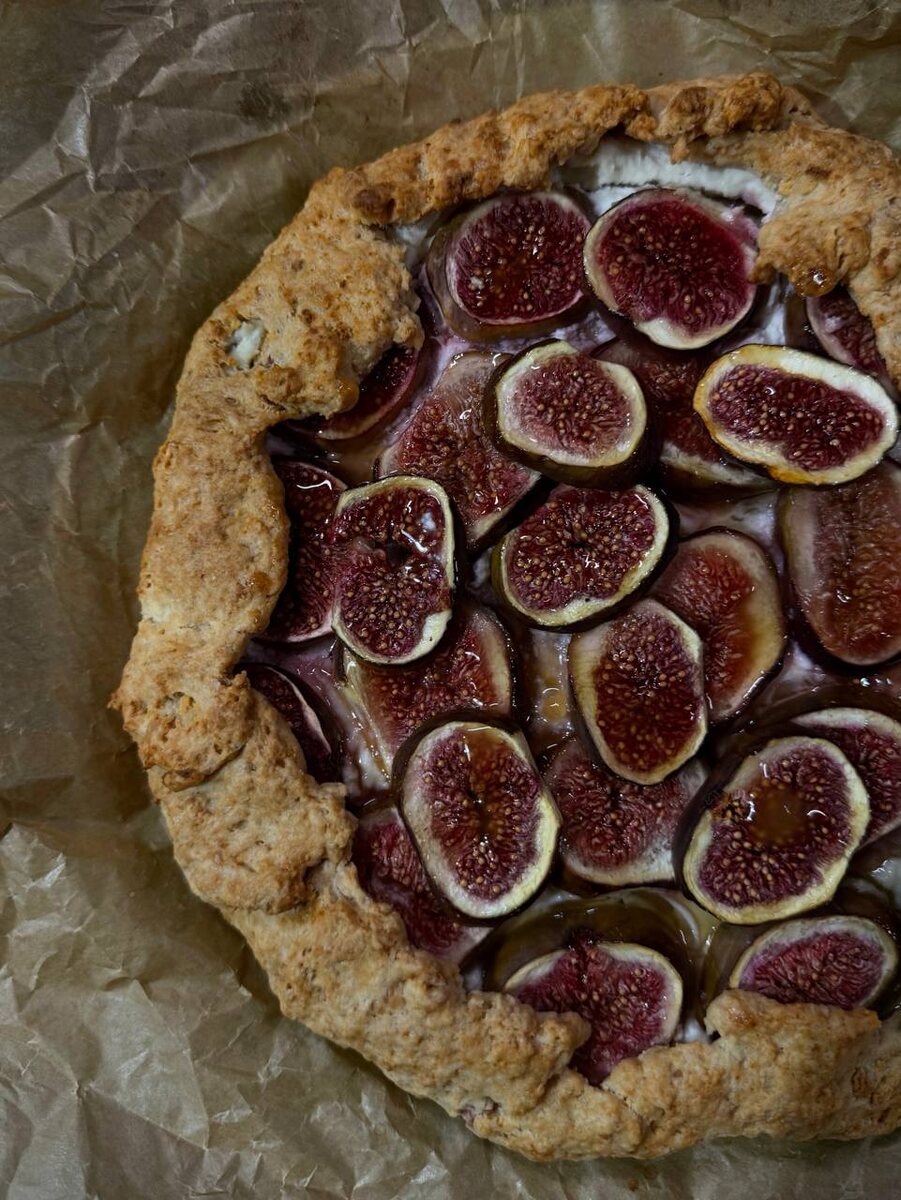 Галета с рикоттой, инжиром, медом и еще немного с козьим сыром.