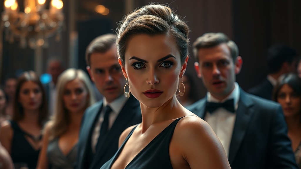 Я нехотя повернул голову к сцене. Свет прожекторов ударил мне в глаза. Когда они привыкли, я увидел ее. На сцене стояла женщина в длинном, переливающемся темно-синем платье, которое облегало ее фигуру. Ее волосы были уложены в элегантную прическу, на лице — профессиональный макияж с акцентом на глаза. Она выглядела как настоящая дива. Уверенная, раскованная, сияющая. Она взяла микрофон, и в этот момент прожектор осветил ее лицо крупным планом.