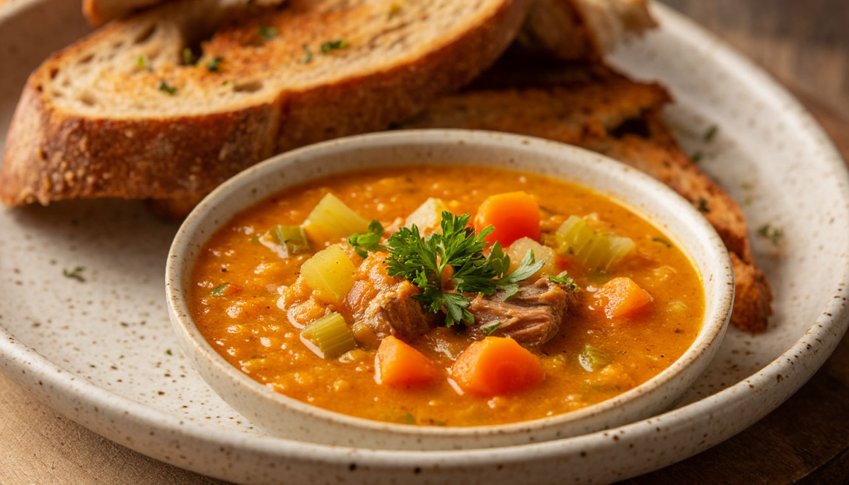 Этот суп — как луч осеннего солнца, который вы поймали в тарелку. А хрустящая курочка сверху — это та самая «изюминка», которая превращает ужин в кулинарный шедевр.