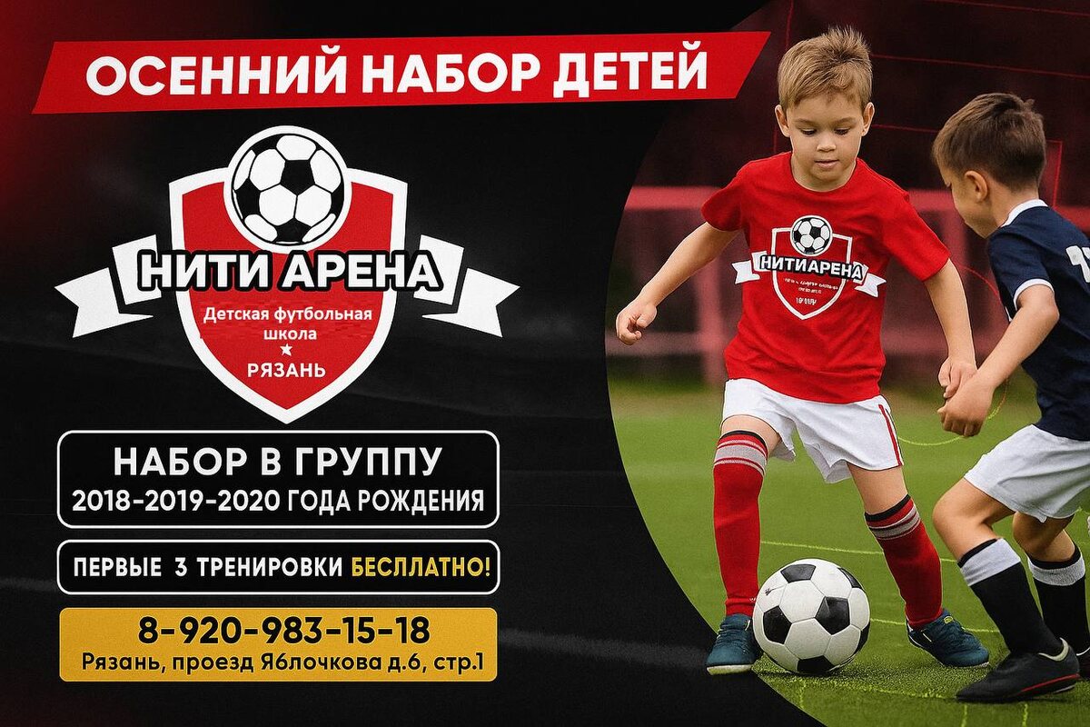 Осенний набор детей 2018/2019/2020 года рождения. ————————————— Записывайтесь на 3 бесплатные тренировки и занимайте последние места в команде! 👉 @niti_arena_admin 📞 Или звоните по телефонам: +7(4912)407-406 +7-920-983-15-18 https://футбольная-школа-нити-арена.рф #футбольнаяшколанитиарена #футболрязани #детскийспортрязань #школафутболаврязани