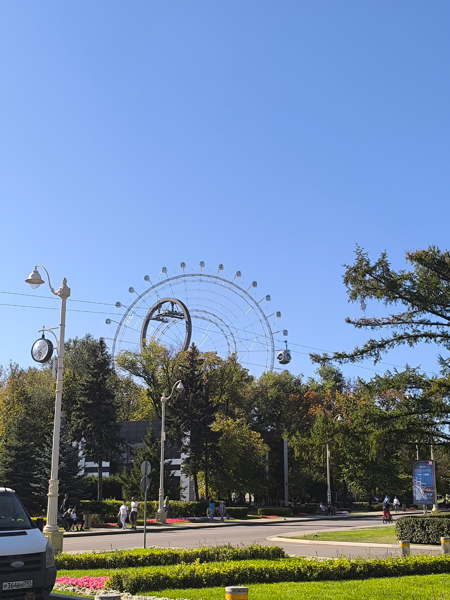 Вышла я на дорогу, где расположены аттракционы. Для себя решила, что буду чередовать прогулку на свежем воздухе с посещением павильонов. Погода замечательная и долго бродить по помещениям не хочется. Увидела вот такой огромный глобус. Дошла до павильона "Дом страха". Сюда я точно заходить не буду))). Не люблю когда меня хватают в темноте, да и вообще я не люблю ужасы. Смотрела несколько, но мне не нравится. Прошла павильон с мультфильмами. Я здесь была года два назад, там все для детей, поэтому я не заходила. На входе любимые герои мультика. Солнышко пригревает, настроение замечательное, вдоль дороги растут и радуют своим видом цветы. Смотрю как люди веселятся на аттракционах. Постояла, понаблюдала и решила вернуться к центру ВДНХ, зайти в парочку павильонов и вернуться сюда же, чтобы продолжить свою прогулку. Почти весь центр был огорожен и я сама не поняла как вышла к павильону Молдова. Я это здание раньше вообще не замечала, оно находится чуть в стороне от центральной дор