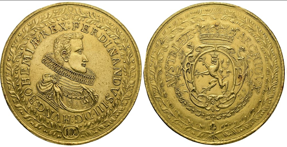 Речь идет о монете 1629 года с изображением Фердинанда III Габсбурга. Молодой король заказал ее в качестве подарка для немецких князей, когда был австрийским эрцгерцогом и правителем нескольких королевств. Позже он стал императором Священной Римской империи.
