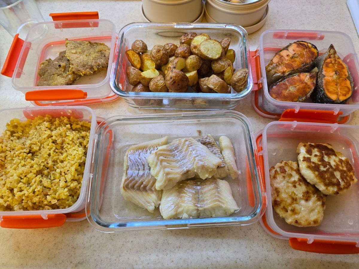 Притендую на титул хозяюшка года 🤣 30 минут моего времени и обеды в школу и ужины для ребенка готовы: - булгур по-турецки - картошечка запечённая - котлетки - шницель из куриной грудки - форель - треска Да, на неделе ещё буду готовить, но дня на 3 я свободна 😅 только салатик или овощи порезать нужно будет.