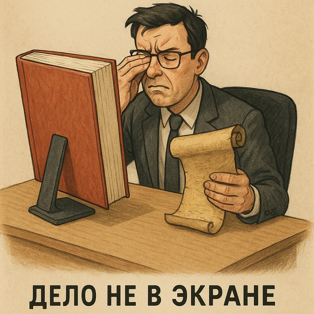 Главный враг современного зрения — это, без сомнения, экран смартфона. Так думает большинство из нас. Мы покупаем специальные очки для компьютера, защитные пленки на экраны и ругаем детей за лишний час с планшетом. Однако, по словам врача-офтальмолога Яны Катасоновой, мы воюем не с тем противником. В подкасте «Скажите А» она объяснила, что на самом деле «убивает» наши глаза и как простое правило гигиены зрения может быть эффективнее любых дорогостоящих аксессуаров. Основной миф, который развеивает офтальмолог, — это вера в исключительную вредность цифровых экранов. На самом деле для наших глаз нет принципиальной разницы, на что именно мы смотрим. Проблема — в любой длительной работе на близком расстоянии. «Это не то, что телефон виноват. Это просто работа вблизи, — утверждает Яна Катасонова. — Если бы мы в это время читали книгу, зрение бы падало с одинаковой скоростью». Когда мы по 8-12 часов в день фокусируемся на чем-то, что находится в 30-40 сантиметрах от лица, наши глазные мышцы