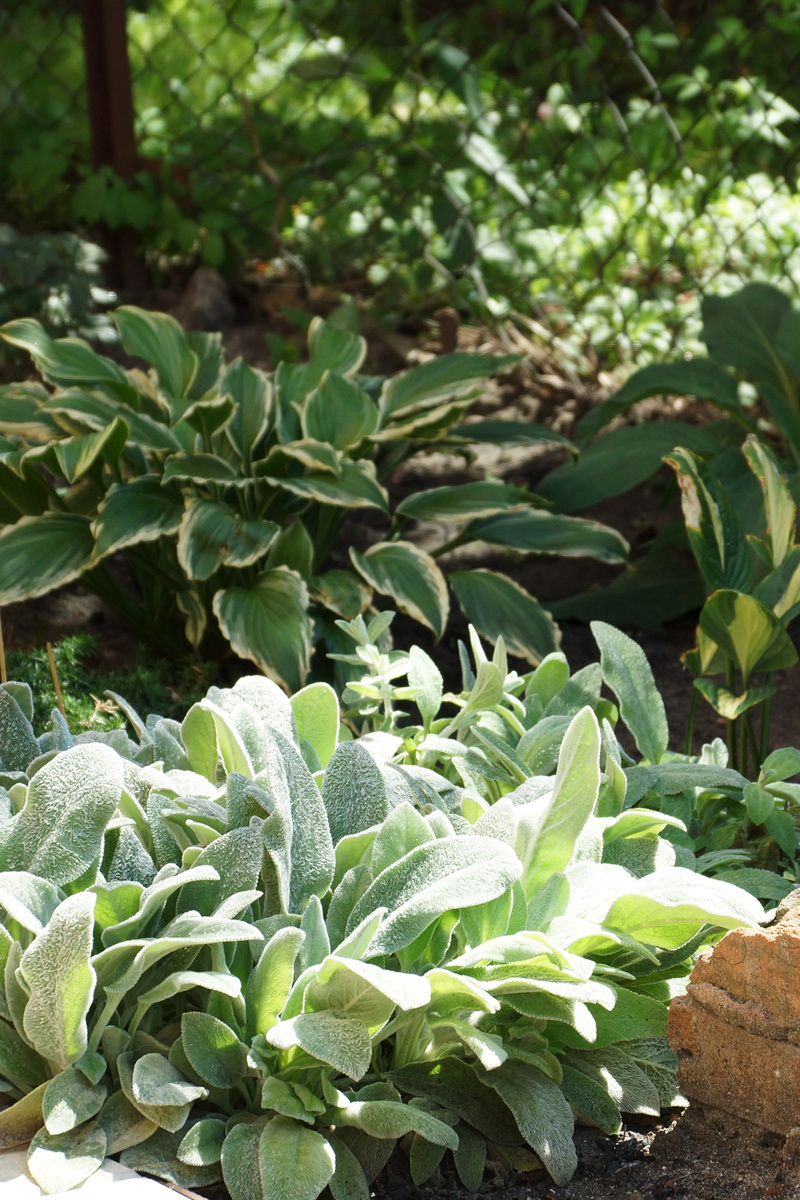 Чистец шерстистый, он же стахис византийский. Прекрасный почвопокровник с чудесной фактурой. Не зря его называют "овечьи ушки". Но нужно держать в узде и не давать цвести, тогда будет сохранять плотность и пушистость.