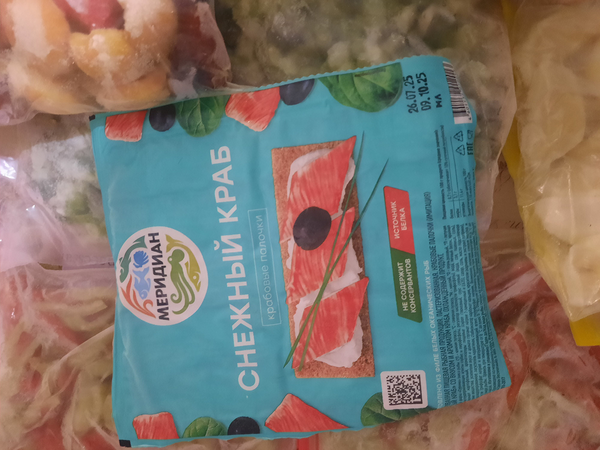Наконец-то я разобрала свой морозильник. И уложила все аккуратно по ящикам, посчитала запасы. Одни крабовые палочки Котлеты, фрикадельки на одно блюдо, куриное мясо и готовый бульон на борщ Кости на супчик харчо - говяжья грудинка, мясо на манты/самсы/лагман, и рядом еще такой же пакет - это говядина. Вверху свинина на плов Готовые пакеты на компот, отдельно замороженный виноград, тоже для компотов - обожаю его добавлять в компотную смесь Перцы, смесь зеленойифасоли и сельдерея на подливы всякие, остатки лимона С огромным трудом раздобытый кусочек говяжьего жира для фарша на манты. Сельдерей, перец, и помидоры, и смесь капусты для мужа на суп-пюре Снова перец И по мелочи - сыр, мороженое одно, остатки горошка и нарезанная морковь с дайконом (тоже для подлива) Так теперь это выглядит, более менее прилично, и место еще осталось для следующей заморозки. Заказала два заказа - из Дикси и Ашана, и еще и в магнит с КБ сходила В КБ купила яйца. В этот раз прекрасные яйца, с ярким желком,