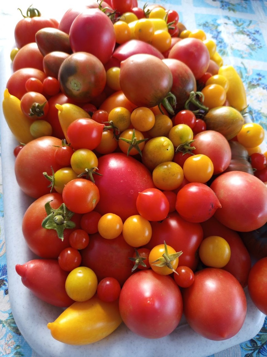 Я не представляю свой огород без томатов черри! Эти десертные плоды даже овощами назвать сложно, ведь если сорт сладок, то со стола улетает как ягода. В этом году я затестировала несколько новинок и как обычно высадила обожаемых «Чудо деток». Обо всех них сегодня расскажу. Отдельно отмечу, я увлекаюсь только сортами, чтобы не тратиться ежегодно на покупку понравившихся гибридов. Атомный виноград Бреда Из всех моих черри самый крупный, от 50 до 70г. Узоры на нем расползаются самых разных оттенков, можно залюбоваться, пока разглядываешь. Мякоть спелого плода зелено-желтая, по вкусу у меня была сладкая с легкой кислинкой. Семян довольно много, они не мелкие. Урожайность высокая, я формировала в 4 стебля и сняла под 10кг с корня в общем. Особенно рекомендую этот сорт из-за того, что он богат антоцианом, для человека наиполезнейшим веществом, которое, кстати говоря, защищает урожай от грибков. Высота растений в ОГ была около 150см. В теплице выращивать можно, но там повыше растения будут.