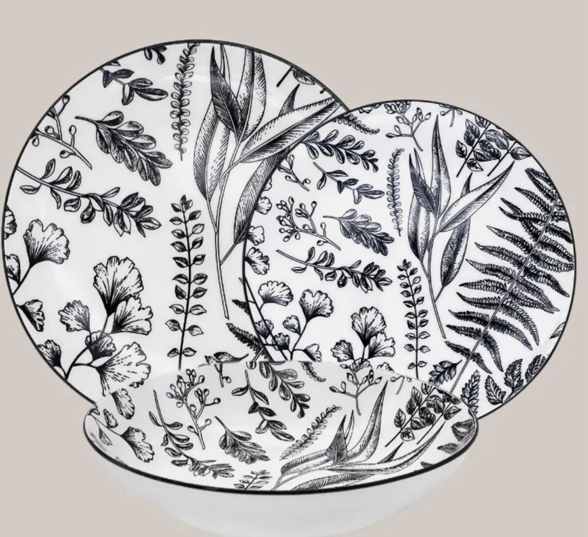 Фарфоровая коллекция посуды "Папоротник" представлена также и в черном цвете. Но в нашем магазине предметов черного цвета было меньше. Это обеденная и десертная тарелки.