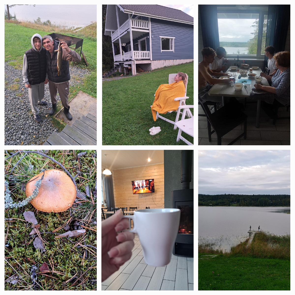 То ли суматошный и эмоциональный вчерашний день так вымотал, то ли вчерашний улов окрылил, но, выбравшись из-под одеяла и вдохнув аромат утреннего кофе, вдруг остро захотелось посвятить день грибам и рыбалке. Утром, вооружив всех ножами и пакетами ,подхватив Федора мы отправились на экотропу Лапинлинна, что проходит за нашей скромной избушкой. Мы с вами там уже прогуливались пару лет назад☺️👇 Согласитесь, есть своя особая атмосфера: ходить по лесу одетый ,как бездомный с ножом в руках и таинственно молчать. Перед походом за грибами настоятельно рекомендую изучить внимательно второе издание 😄У нас главный знаток по грибам -мама ,я знаю всего 2-3 наименования съедобных и то не уверена 🤭 На тропе есть несколько маршрутов: нижний и верхний. Мы, конечно, выбрали верхний – и виды живописнее, и лес гуще, а значит, и гриб нас там точно ждет! Виды и правда оправдали ожидания, а вот грибы… Долго и упорно мы их выискивали, приговаривая древнее заклинание: "Лес, лесочек, дай нам грибочек!"