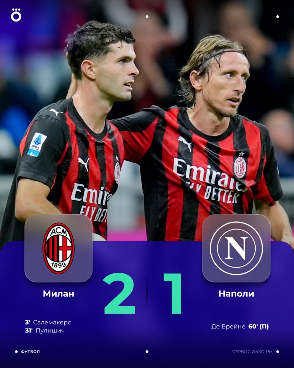 ⚽ «Милан» в меньшинстве победил «Наполи». Первое поражение Конте в сезоне.