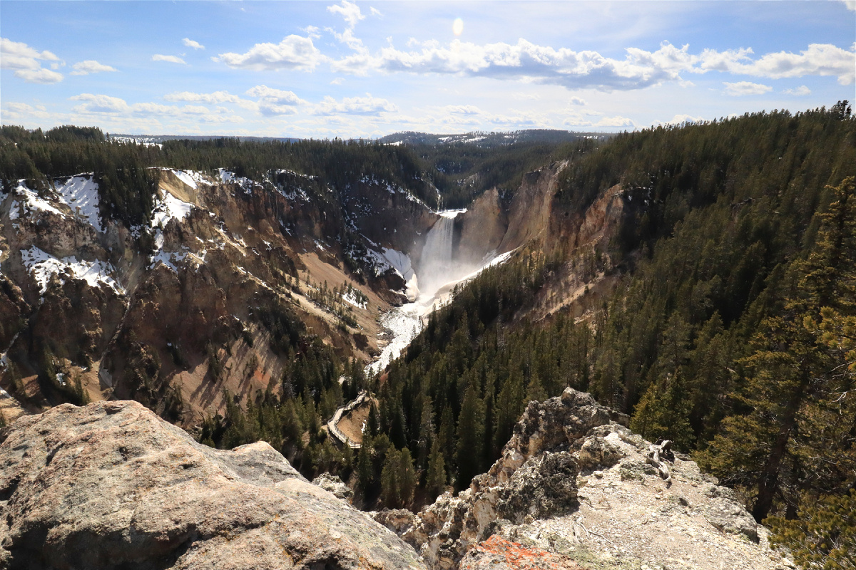 С чувством выполненного долга доезжаем до Tower Falls. Делаю фото водопада с «башнями» сверху, а также каньона по соседству.