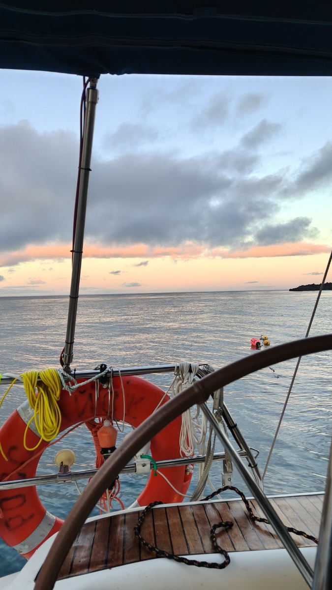 Вокруг винта обмоталась веревка, яхту остановили и она крутилась на волнах противоположно курсу. Кэп надел гидрокостюм и долго с трудом срезал веревку вод водой. Через час восстановили курс. На яхте эмоциональные качели круче, чем как пишут в отношениях с абьюзером. Таня испекла хачапури на сковороде.