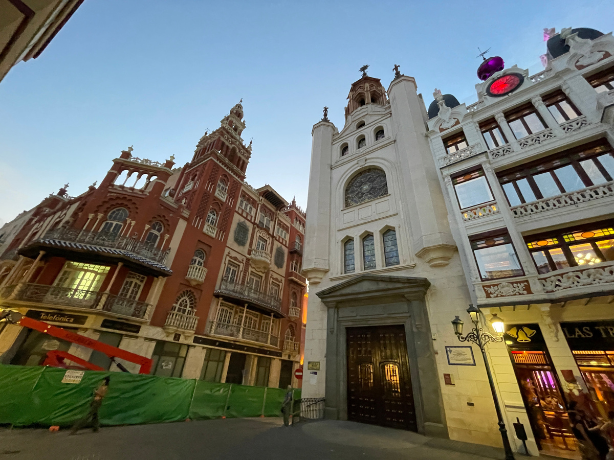 Продолжаю про путешествие в Бадахос. Закончила я на том, как мы добрались до площади Plaza de la Soledad. И там нам встретилось целое созвездие из зданий необычной архитектуры. Тут и Ла Хиральда - здание в стиле неомудехар, построенное в 1930-х годах и повторяющее образ знаменитой колокольни в Севилье. Венчает здание статуя бога Меркурия, который покровительствовал торговле. Напротив находится Эрмита де ла Соледад (я как-то писала про слово ermita. Не переводится оно на русский буквально, но в этом случае можно перевести, как небольшая церковь). В ней хранится образ Богоматери Одиночества, которая является покровительницей Бадахоса. А рядом с ermita de la Soledad мы увидели стеклянные двери отеля, которые манили каким-то магическим теплым светом. К этому моменту мы уже прилично устали и решили зайти внутрь. Вошли. И вдруг нам показалось, что мы попали внутрь какого-то сказочного диснеевского фильма. Внутри все казалось нереальным. Вообще-то я не очень люблю диснеевские фильмы, но в это