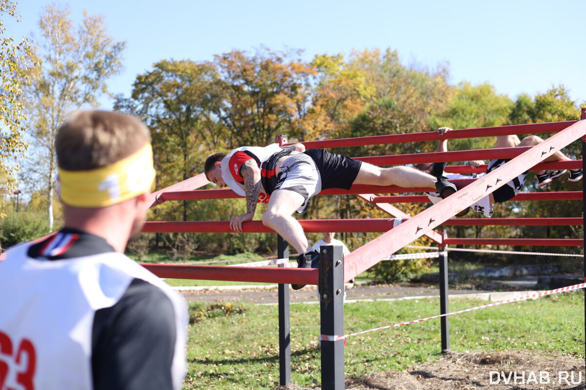 Последняя в этом году экстремальная гонка прошла в Биробиджане. Местом проведения стал стадион «Дружба». Соревнования проводились в рамках чемпионата Дальнего Востока по гонкам с препятствиями. В таком формате спортивное состязание проводится в столице ЕАО впервые. Его посвятили 80-летию Победы в Великой Отечественной войне. Побороться за главный приз прибыло более 40 спортсменов из Хабаровска, Владивостока, Сахалинской, Амурской и Еврейской автономной областей. — Я рад приветствовать вас здесь, на чемпионате Дальнего Востока, в нашей маленькой, но очень спортивной области. Хочу сказать всем спасибо, что вы нас поддерживаете и откликаетесь на наш вызов. Особенная благодарность ребятам с Сахалина, которые прибыли к нам с островов. Желаю всем удачи, — поприветствовал спортсменов Алексей Гребенников, президент Федерации гонок с препятствиями в ЕАО. Соперникам предстояло преодолеть трассу в 6 километров. По всей протяженности маршрута было расставлено два десятка препятствий. По традиции а