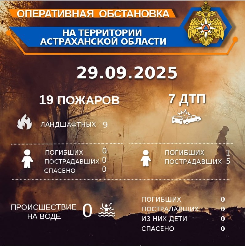 🚨Оперативная обстановка на территории Астраханской области по состоянию на 00:00 29.09.2025