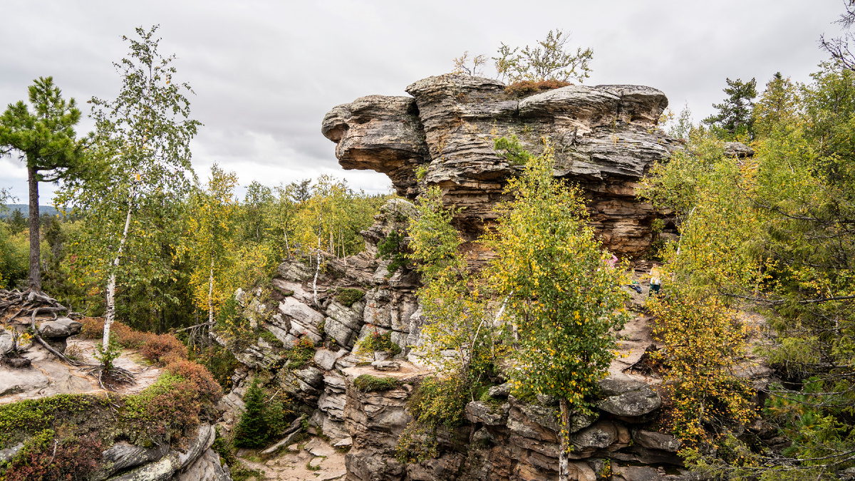 Продолжаем осенние путешествия по Уралу. Каменный город – идеальное место для семейной прогулки с детьми в Пермском крае. Про путешествие выходного дня от Сергея Маркова: Куда поехать на выходные с детьми? Чтоб детям было нескучно и идти недалеко? Один из вариантов – это Каменный город в Пермском крае. Идти от дороги всего полтора километра по деревянной дорожке. В последние годы, дорожку обновили и сделали в значительно шире. Также сделали дорожки вокруг Каменного города и огородили самые опасные места. Теперь можно ходить не испачкав обувь и в сырую погоду. Хорошо ли это? Не знаю. Конечно, самые интересные места не на дорожках, а в узких проходах и закутках. Детей забавляет, что папа не может проследовать за ребенком, не проходит по габаритам. Конечно все нужно контролировать. Лучше всего в дружной веселой компании из нескольких взрослых и детей. А рассказанные с серьёзным видом сказки, о том, что потерявшиеся дети так и бродят тут в виде призраков, немного усмиряют расшалившихся дет