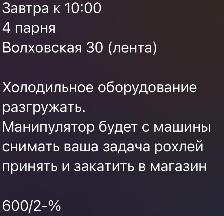 Всем привет взяли мы значит заявку на разгрузку холодильного оборудования это может быть все что угодно и холодильники по 500кг, и стеллажи, и металл, и трубы, но есть 1 нюанс в заявке указано будет манипулятор, поэтому все должно быть легко Когда мы пришли на месте, то сначала просто сидели и ждали машину, когда пришла машина мы увидели 9 газовых баллонов и подумали, что это халява когда разгрузили их, то узнали, что будет вторая машина приехала вторая машина но манипулятора все не было мы разгружали «мелочевку», но потом я заметил что-то странное Когда мы убрали всю «мелочевку» мы увидели огромную катушку с кабелем весом в тонну Нас 4 человека и нет манипулятора, оформитель заявки говорит, что поднимал такие в 4 руками мы не стали проверять его теорию, поэтому подогнали машину к пандусу и выкатили катушку на рохле