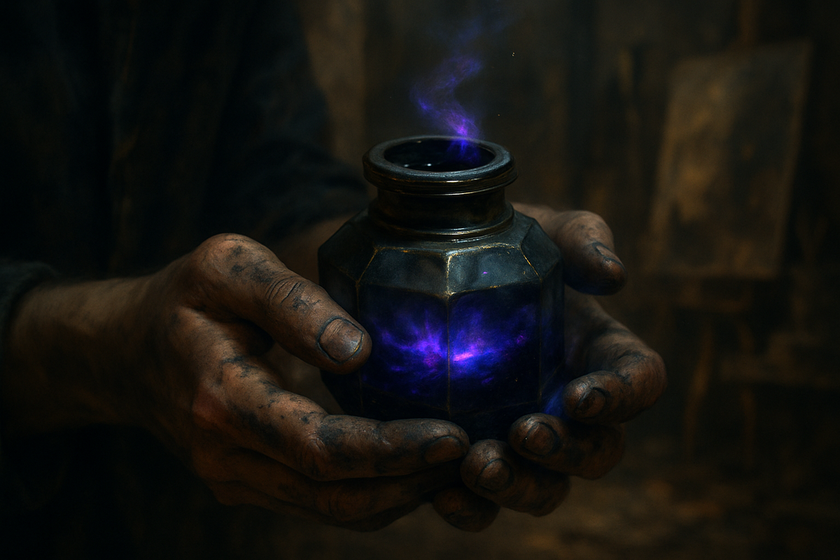 Однажды, разбирая вещи, доставшиеся ему от прадеда-алхимика, он нашёл маленькую гранёную чернильницу из тёмного, почти чёрного стекла. Внутри плескалась густая, маслянистая жидкость цвета полуночного неба. К чернильнице прилагалась записка: «Оживляет то, что рождено на бумаге. Но бойся пустоты, ибо она жаждет цвета».