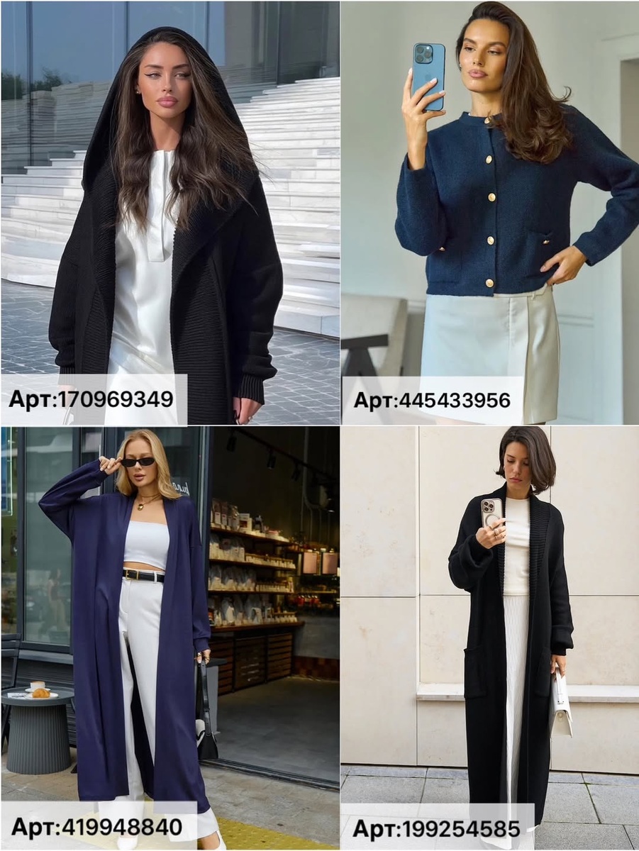 Чёрный, тёмно-синий и бордовый — это не про мрачность, а про глубину цвета, ясные линии и уверенность. В этой подборке — восемь вещей с артикулом каждой, которые складываются в продуманную капсулу: от длинных кардиганов-пальто до компактных джемперов на молнии. Разбираю по порядку: как сидит, чем хороша ткань, с чем сочетать и какой приём усилит эффект.
